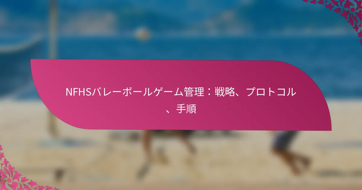 NFHSバレーボールにおける効果的なゲーム管理は、すべての参加者にとってスムーズで公平な体験を確保するために不可欠です。主要な戦略には、明確なコミュニケーション、確立されたプロトコルの遵守、交代や紛争の効率的な処理が含まれます。構造化された手続きを実施することで、審判やコーチはゲーム全体の流れを向上させ、選手や観客にとって楽しい環境を維持できます。