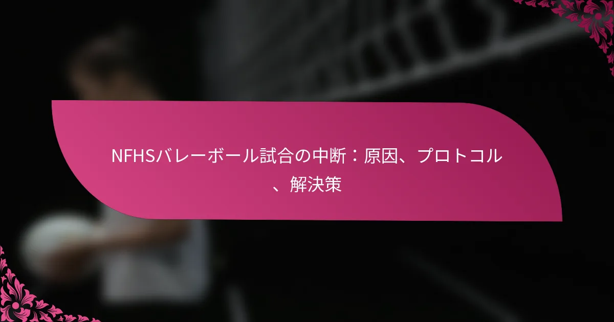 NFHSバレーボールの試合における中断の一般的な原因には、選手の怪我、悪天候、ルール違反、機器の故障、外部の妨害が含まれます。これらの要因はそれぞれ試合の流れに大きな影響を与え、解決のための特定のプロトコルが必要になる場合があります。