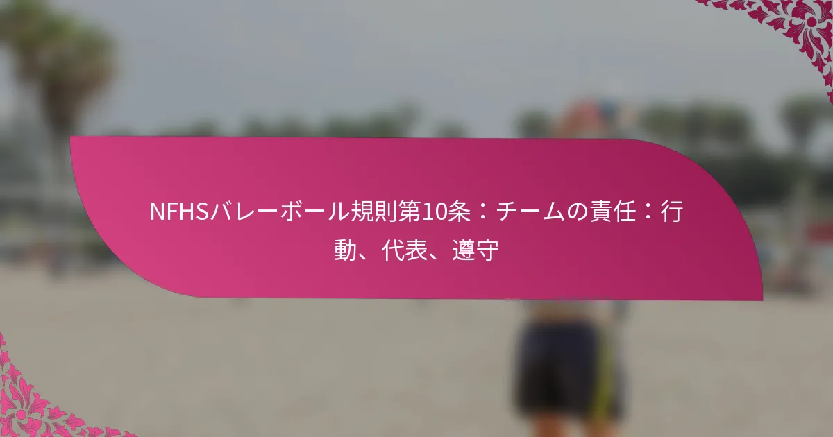 NFHSルール10は、行動、表現、遵守に関するバレーボールチームの責任を概説しています。チームは、シーズンを通じてフェアプレイとスポーツマンシップを確保するために、特定の基準を遵守しなければなりません。