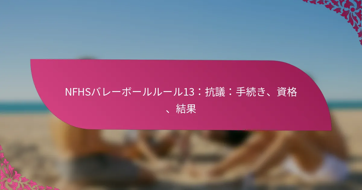 NFHSバレーボールルール13は、資格および試合の進行に関連する抗議を提出するための手続きを概説しています。このルールは、スポーツにおける公平性と誠実性を維持するために不可欠であり、チームが試合の結果に影響を与える可能性のある決定に異議を唱えることを可能にします。