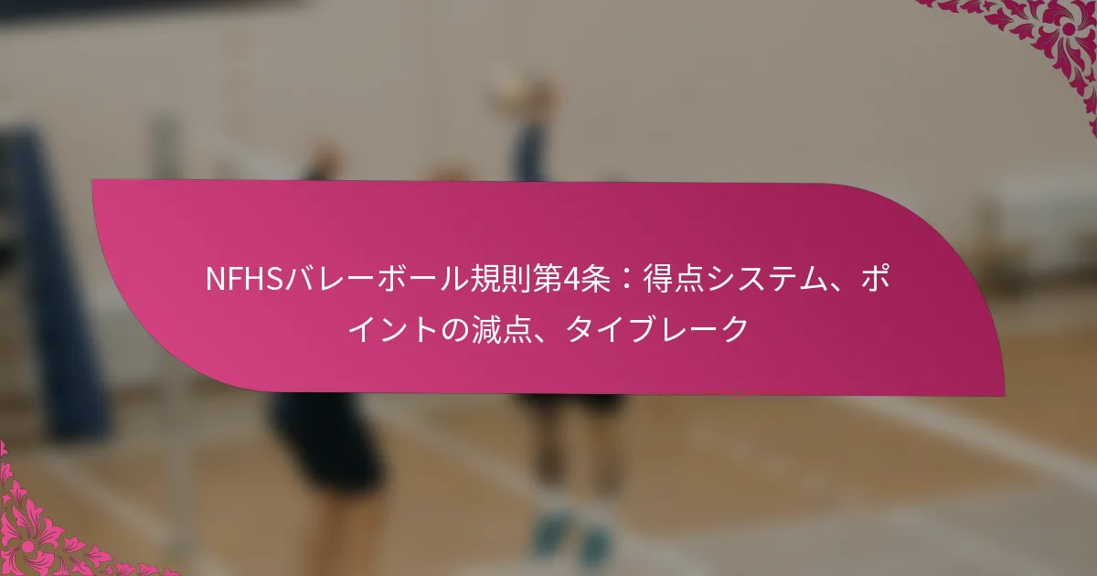 NFHSバレーボールルール4は、ラリースコアリングや従来の方法を含むスコアリングシステムに関する重要なガイドラインを提供しており、これは選手、コーチ、審判にとって不可欠です。また、チームのパフォーマンスに影響を与える違反に対するポイントの減点についても触れ、チームが拮抗している場合に試合を公正に解決するためのタイブレイキング手続きを概説しています。