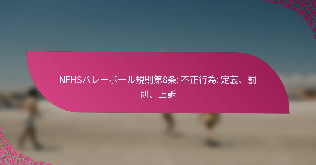 NFHSバレーボールにおける不正行為は、ゲームの精神に反し、公正なプレーを妨げる行動を含みます。このような行動に対する罰則は、警告から退場までさまざまな重さがあり、スポーツマンシップを維持するために重要です。さらに、不正行為の決定に対する異議申し立てのための構造化されたプロセスがあり、公正な審査を確保するために特定の手順と文書を理解する必要があります。