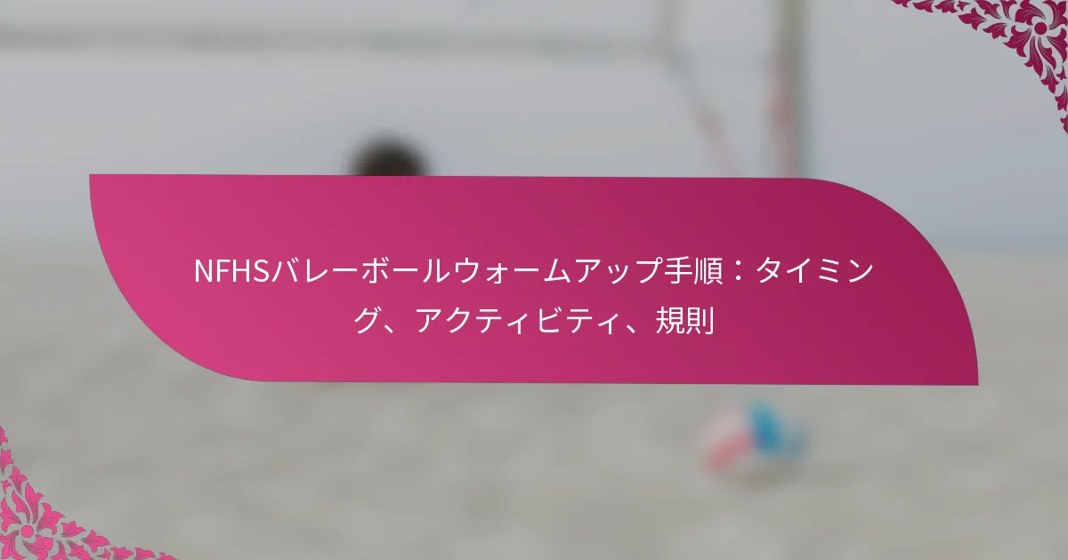 NFHSバレーボールのウォームアップ手順は、試合前にチームが効果的に準備するために必要なタイミングと活動を概説しています。これらのガイドラインは、選手が身体的および精神的に準備が整い、怪我のリスクを減少させ、パフォーマンスを向上させることを保証します。